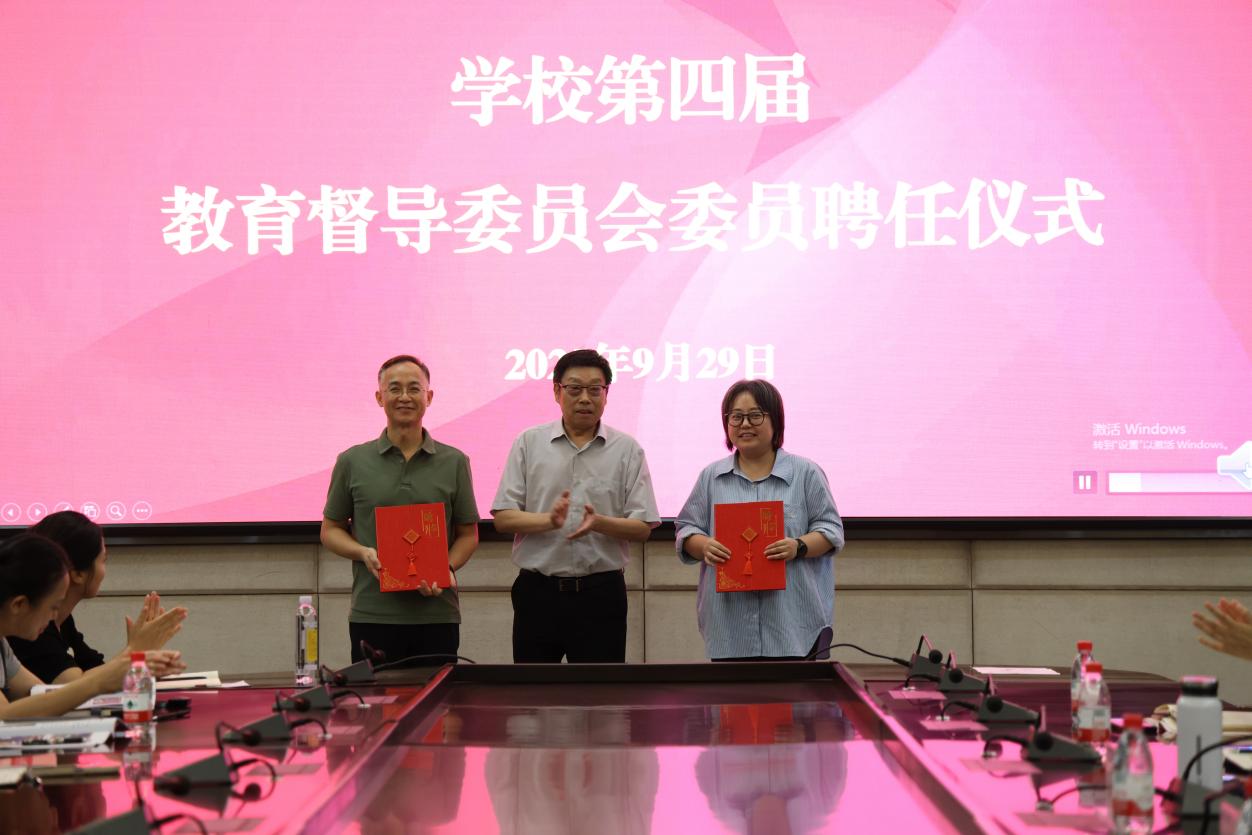 会上,校长助理、教育督导委员会副主任委员双海军宣读了《关于成立第四届教育督导委员会的通知》和新一届委员名单。随后,新一届教育督导委员会主任委员孙敏,与副主任委员双海军、王璐共同为全体委员颁发聘书。